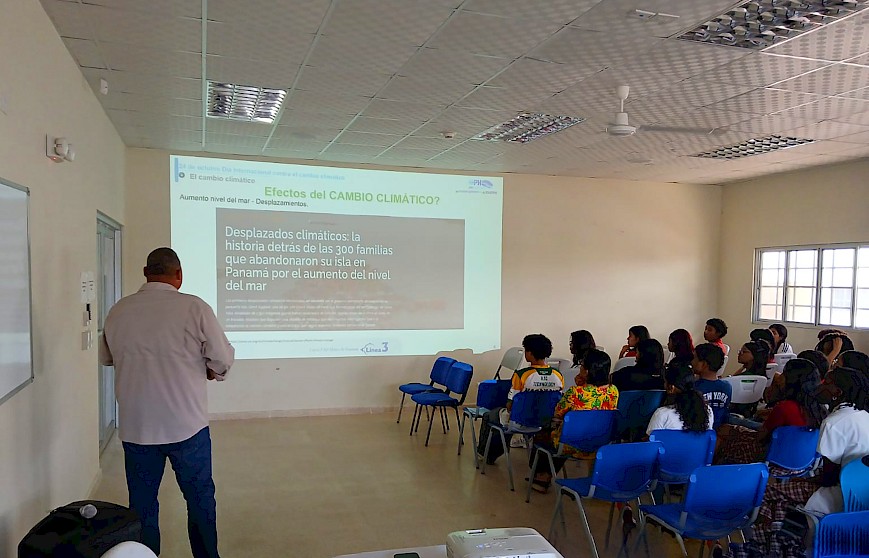 Durante la presentación, 50 estudiantes de 12º grado exploraron las causas y efectos del cambio climático a nivel global y local, conocieron su historia y debatieron sobre las acciones que pueden emprender desde sus hogares y escuelas. Además, se compartieron las iniciativas que el Consorcio HPH JV desarrolla para mitigar los impactos ambientales asociados a sus operaciones.